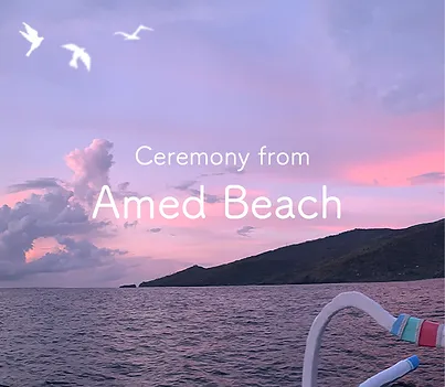 アメッドビーチ前にてバリのお坊様と共にお祈りを捧げます。